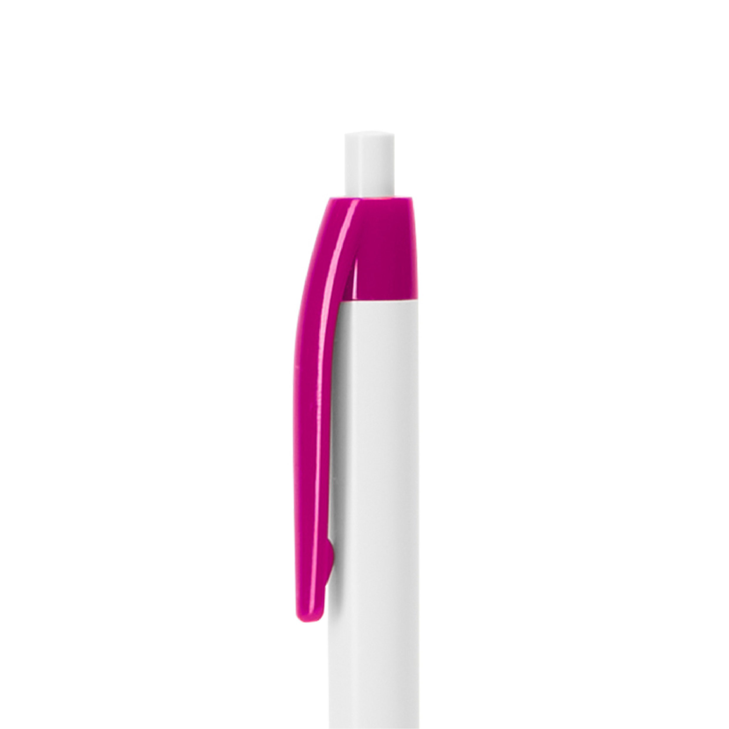 Penna a sfera Hindres in ABS con meccanismo a scatto. Corpo e clip bianchi, disponibile in un’ampia gamma di colori.